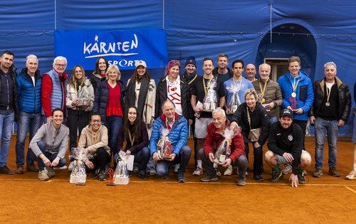 Wie gewohnt bei den Seniorenmeisterschaften in der Halle gab es über die Woche verteilt und auch am Finaltag viele Zuschauer. Bei der Siegerehrung waren die Präsidentin Elke Romauch und der KTV-Seniorenreferent Willi Scheibl anwesend. Die Sieger erhielten ein Goodie-Paket, einen 10€-Gutschein für das Mozart Café sowie einen 20€-Gutschein für den Headshop auf der KLC-Anlage, den sie im Anschluss auch gleich einlösen konnten. Unter allen Verlierern der ersten Runde wurden drei Trainerstunden verlost, über die sich Manuel Kopeinig, Christian Amlacher und Marjan Kropiunik freuen durften. Wolfgang Jannach Fotografie war wie im letzten Jahr bei den Finalspielen vor Ort und konnte von den Spielern großartige Action-Schnappschüsse machen.
