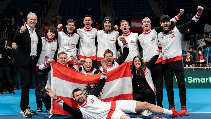 Zuversichtlich gab sich auch ÖTV-Geschäftsführer Wirtschaft Schweda, der zuerst „sehr herzlich dem Namenssponsor KURIER und unseren zwei neuen Teampartnern Raiffeisen Capital Management und Generali“ dankte: „Ohne starke Partner an unserer Seite wären solche Erfolge nicht möglich.“ Und auch nicht ohne die rot-weiß-roten Fans: „Wir freuen uns sehr darauf, dass uns in Bologna voraussichtlich 400 bis 500 österreichische Fans erwarten, lautstark anfeuern und dem italienischen Publikum Paroli bieten werden.“