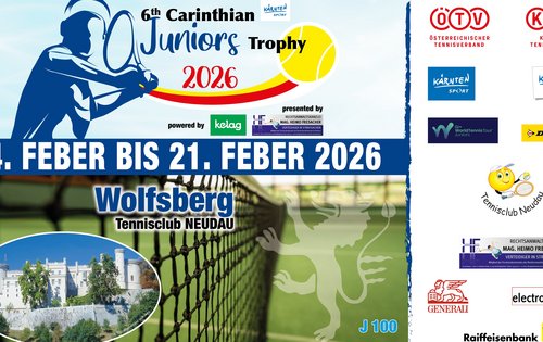 In der Tennishalle Auen, Reisnerweg 1, 9400 Wolfsberg ist bei der 6. Auflage der Carinthian Juniors Trophy von 17. bis 21. Feber 2026 wieder Spitzentennis garantiert.