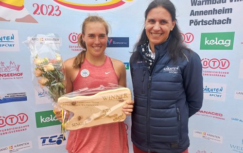 Die Deutsche Carolina Kuhl sicherte sich den Titel beim W15 ITF Damenturnier in der Pörtschacher Werzerarena. Sie bezwingt vor den Augen von ÖTV Vizepräsidentin Elke Romauch und der Pörtschacher Bürgermeisterin Silvia Häusl-Benz in einem sehenswertem Finale Lara Salden (BEL) 6:1 1:6 6:4.