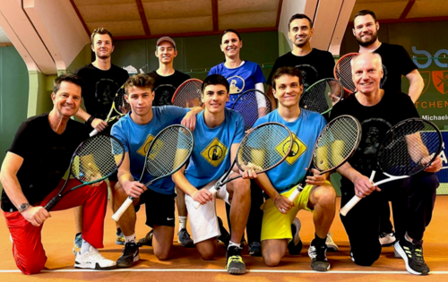 Zumindest auf der Seitenlinie, denn auf den Plätzen stehen sich Kordasch Simon, Adlbrecht Luca und Sapetschnig Tobias (TC St. Andrä) und Schneider Yanick, Majdic Philipp und Macheiner Stefan (TC Neudau) gegenüber.
