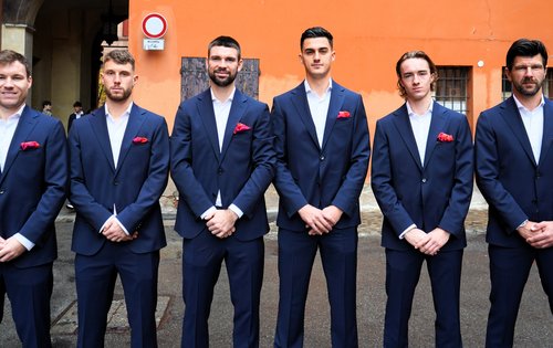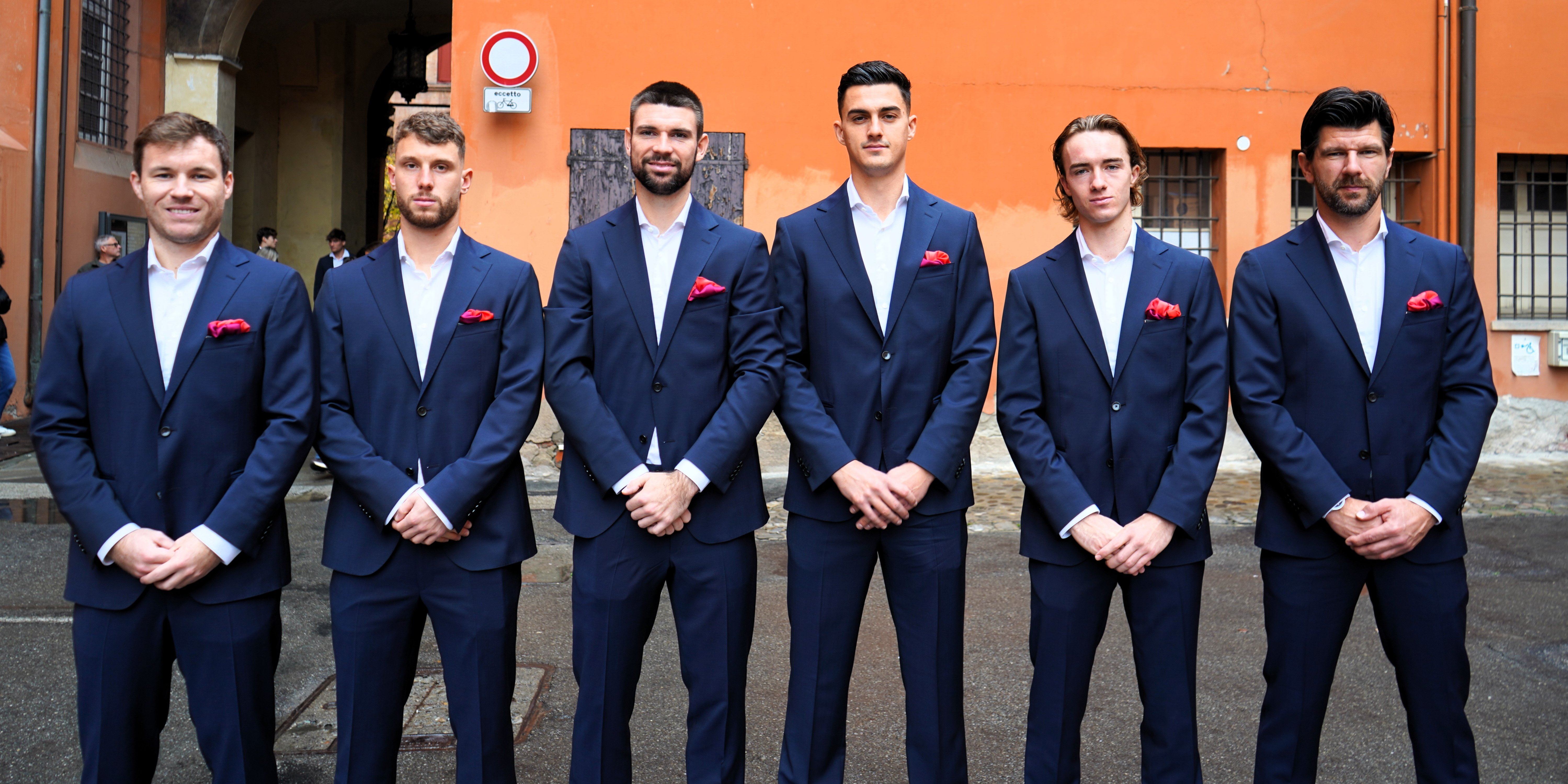 Das KURIER Austria Davis Cup Team ist am Samstagmorgen zu den Davis Cup Final 8 in Bologna abgereist – und bereitet sich seither gewissenhaft auf den Viertelfinalschlager am Mittwoch ab 16:00 Uhr (live auf ORF 1 und auf ÖTV TV unter www.oetv.tv) gegen den zweifachen Titelverteidiger und Gastgeber Italien vor. Am Sonntag stand zunächst noch eine Zusammenkunft auf dem Programm: Beim traditionellen Welcome Event im Palazzo Re Enzo im Stadtzentrum wurde das Finalturnier stilgerecht eingeläutet. ITF-Präsident David Haggerty begrüßte die Teams persönlich, die sich für dieses Event in bestechende Schale geworfen hatten und damit, auf einem grünen Teppich entlang schreitend, auch die Beobachter:innen auf dem Piazza del Netuno verzückten. Das KURIER Austria Davis Cup Team machte dabei in einem Outfit des Wiener Herrenbekleiders Sturm am Parkring exzellente Figur.