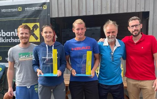 Thomas Valent konnte sich zum dreifachen Bezirksmeister im Herren Einzel, Herren Doppel und Mixed Doppel küren. Mit seinem Partner im Doppel (gleichzeitig sein Gegner im Einzel) Stefan Wildhaber brachte er den gläsernen Pokal nach Kraig. Das Gegenstück zu Tom Valent ist bei den Damen die erst 20-jährige Anna Buchacher vom TC Launsdorf, die den Damen Einzel Bewerb, das Damen Doppel mit ihrer Partnerin Sandra Höfferer und das Mixed Doppel für sich entscheiden konnte.
