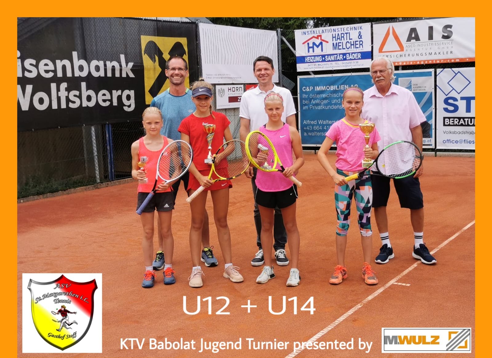 Erstmalig veranstaltete heuer der ASV St. Margarethen ein ÖTV Jugendturnier der Kategorie 2 gesponsert von der Firma Wulz Anlagenbau GmbH. Auf der Anlage des Gasthaus Stoff nahmen insgesamt 68 Mädchen und Burschen aus ganz Österreich an den Bewerben der U12, U14 und U18 teil.Es wurden sowohl Einzel- als auch Doppelbewerbe gespielt. Bei Temperaturen über 30 Grad konnten sich die Zuschauer vom Können der Jugendlichen ihrem Kampfgeist und ihrer Begeisterung für den Tennissport überzeugen.